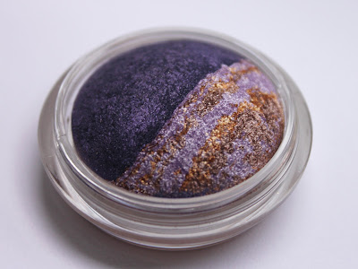 I didn't like the mix of orange and glitter so I decided to get my eyeshadow. Basically with the Essence pigments you're doing the same thing as I did in this video tutorial. This means you can mix the pigments with any eyeshadow you like. I chose p2 - Moonlight Glam, a dark purple with shimmer, mixed it with Broadway Starlet from Essence and applied it to one nail. I love it!