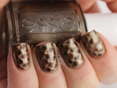 It's been a while since my latest Essie Girls design, but finally it is here. You might have already spotted it on the Essie Girls Facebook Page. If not, here's the full posting! I used two coats of Essie - Nice Is Nice as my base color and then added the leopard spots with Lovie Dovie and Bahama Mama. The spots are outlined with black acrylic paint. On top is one coat of Good To Go.
