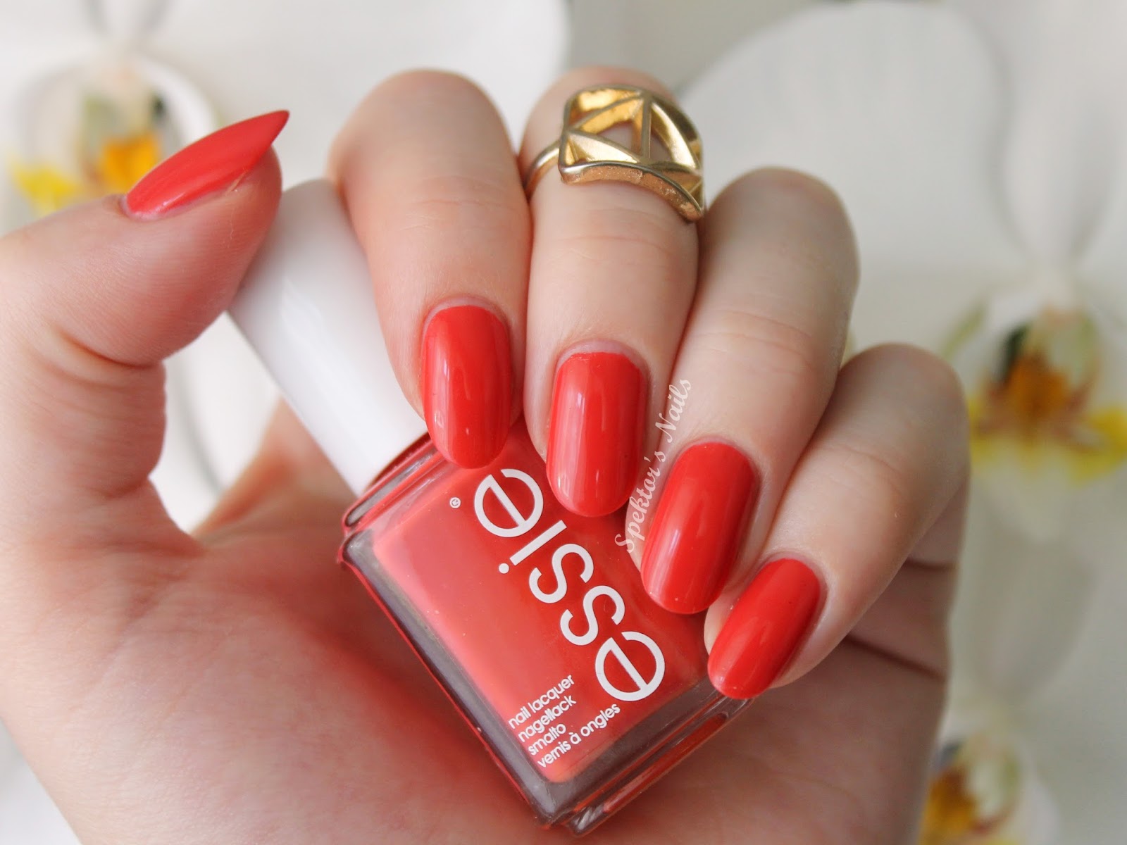 It doesn't happen too often that I wear a simple color without any nail art at all, even if I really enjoy plain nails. I have been growing my nails the last few weeks and I might try a bit of a different shape as well. The almond shape is quite difficult to create so I'm not sure I will wear them like this for a long time, but we'll see! I thought a plain pretty color would be the perfect start since I'm not completely used to wearing long nails yet. I chose Essie - Chubby Cheeks, a beautiful red which Essie describes as a creamy bright red-orange sunset. I used two coats and one coat of Essence - BTGN High Gloss on top.